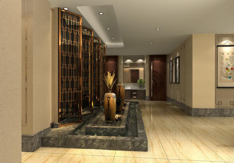 公司為企業(yè)做的辦公室裝修設(shè)計(jì),整體以暖色調(diào)為主,燈光顏色的選用和地板的使用起到了與之相互照應(yīng)的作用,更襯托出整個辦公空間的暖色調(diào)。在顏色方面整體選取暗色調(diào),給人以莊重嚴(yán)肅之感。在燈的裝飾上以及天花的花紋上又看出了中國式的風(fēng)格。