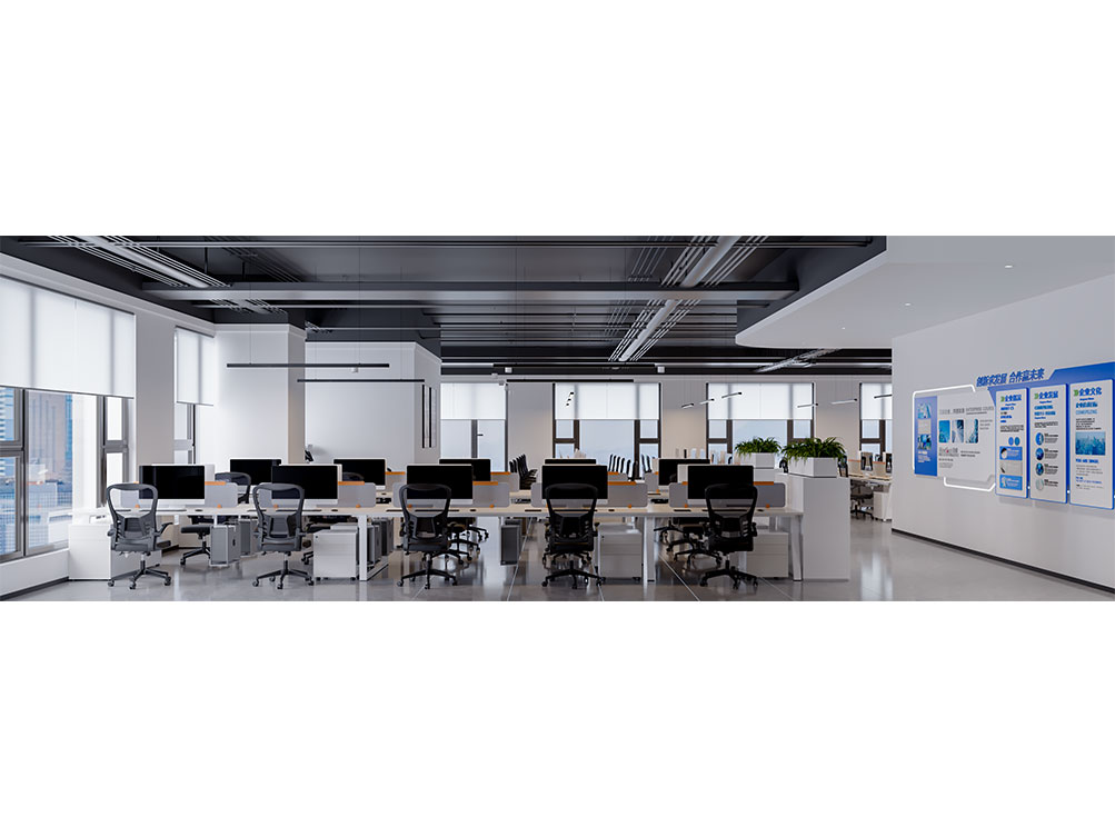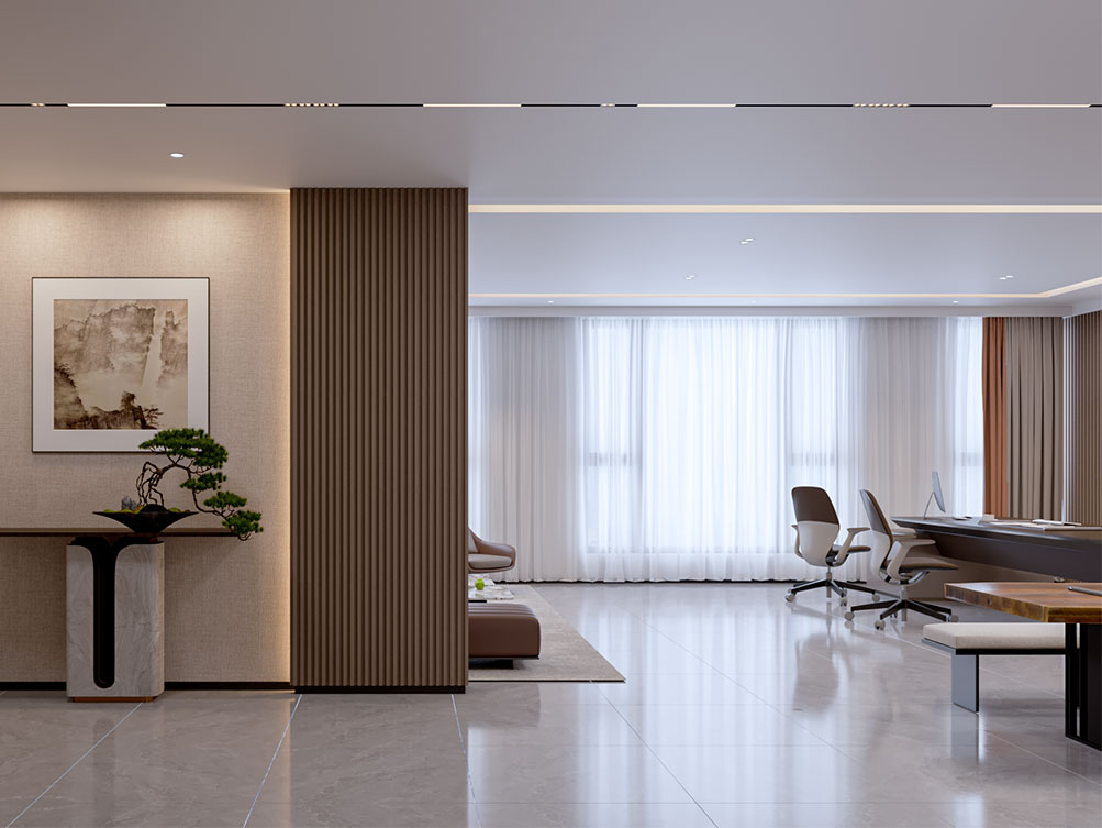 山東邦正機械設(shè)備有限公司裝修效果以 “工業(yè)基因 + 現(xiàn)代辦公” 為核心,前臺接待區(qū)用深灰石材背景墻搭配金屬 LOGO 與機械零件擺件,傳遞專業(yè)硬核的品牌形象;該辦公室裝修是采用模塊化工位設(shè)計,開放區(qū)域以淺色調(diào)與機械主題裝飾畫營造高效氛圍,獨立辦公室則通過木飾面與人體工學(xué)家具提升舒適感;展示區(qū)設(shè)抬高式產(chǎn)品陳列空間與軌道射燈,搭配電子屏及榮譽展示墻,直觀呈現(xiàn)企業(yè)實力;配套的茶水間與不同規(guī)格會議室,兼顧員工休閑與商務(wù)需求,整體實現(xiàn)品牌屬性、實用功能與舒適體驗的統(tǒng)一。